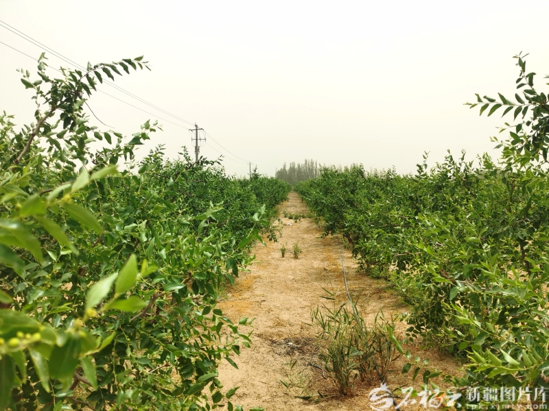民丰县后河坝沙漠阻击区种植的枣园郁郁葱葱。(资料图片)石榴云/新疆日报记者 曹华摄