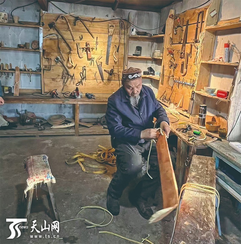 在阿勒泰拉斯特村,斯兰别克・沙合什一家已经传承这项技艺5代了。